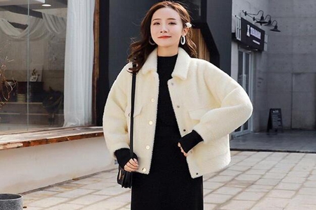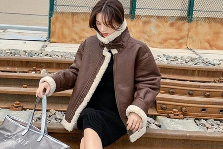 皮毛一体的外套比起单纯的羊羔毛外套,要更加的硬朗帅气,更能表现女性干练的一面。皮质的外衣与羊羔毛的拼接,碰撞了新的火花,帅气又带点可爱范,非常有意思。领子的设计,实用性极佳,翻领与立领的风格随意转换,防风抗寒,可以温暖护颈也能帅气逼人。内搭的黑色高领毛衣裙,让硬朗的外套多一份柔美,有种甜酷的时尚味道。同时衬得皮肤更加的白皙显气质,非常漂亮。