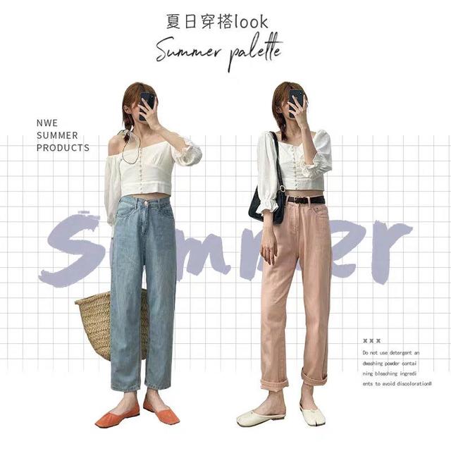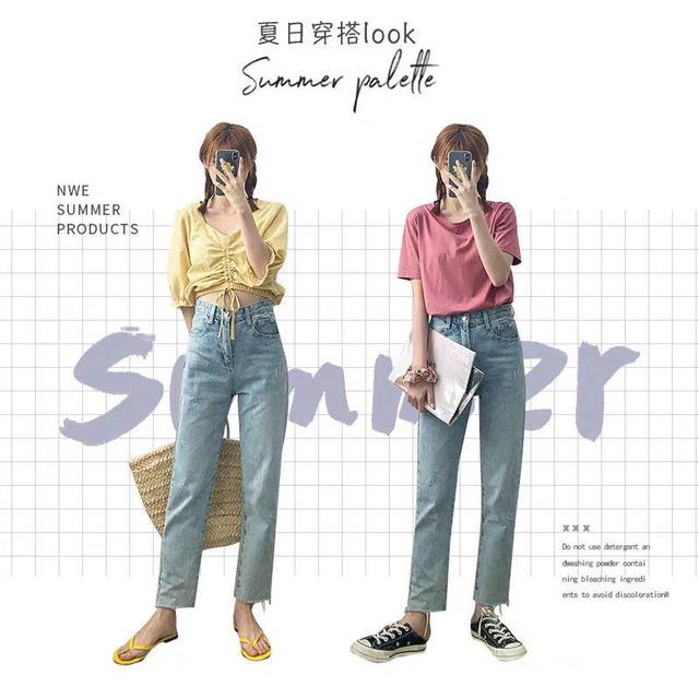 裤子搭配一条高腰的九分直筒牛仔裤,微微露出肚脐,彰显性感的腰身曲线。同时女人的双腿也变得修长了起来,是好看的夏日穿搭哦。夏天下身怎么穿搭好看