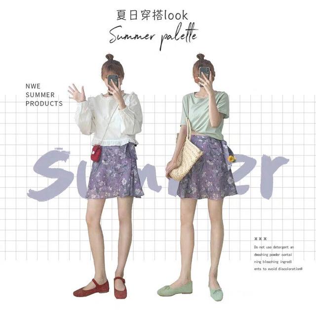 要保证自己的清凉感,所以雪纺衫就是很好的一款单品。它用轻盈的面料不会感到炎热,裙子是一件紫色的有碎花图案的小迷你裙,非常有气质,也非常显优雅。