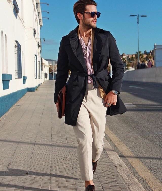▲浅色裤子虽然有些不耐脏,但却十分百搭。几乎每位男士的都有那么一条。无论与西装,风衣,针织衫搭配,都能轻松搭配出有型Look。