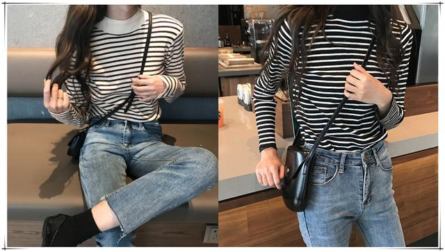 说到不会出错的搭配,条纹搭配牛仔裤是必备单品,无论你是想显瘦还是凸显外型,都很显得你的气质风,很好为你藏肉,还带着一丝中性风,显得清爽还很有生机绝对是减龄的好搭配。