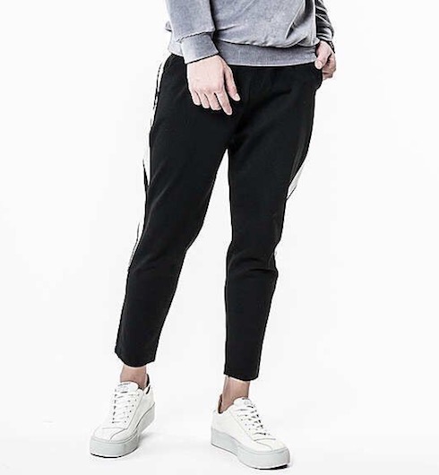 2.慢跑束脚哈伦裤,如果你不喜欢单纯颜色的裤子,觉得很单调。那么这款裤子绝对能符合你的要求。从裁剪上适合人体屈伸的工体力学,简单利落。在细节方面,用双排加固排线勾勒出了两个口袋的形状,点缀了整条裤子。脚裸处的拉线设计更是锦上添花,不仅给裤子增加了金属质感,更加方便了日常穿着!