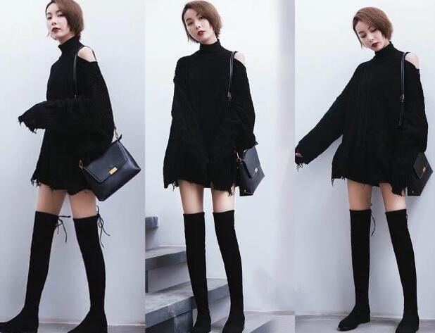 小个子女生穿长筒靴,过膝的长度在秋冬季节来说,穿上是最显腿长的了,还能很温暖,搭配长款挖肩毛衣,那么为什么要搭配挖肩的毛衣呢?挖肩设计的毛衣除了可以给你小性感气息外,还能给你穿上不一样的高级感,并且挖肩的设计比起普通的毛衣要显高好多,与过膝长筒靴搭配起来,显高显腿长。