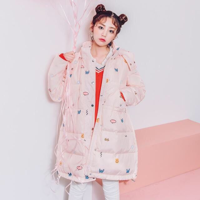 为什么从羽绒服开始,因为羽绒服是卖萌的利器啊。大概是与生俱来的蓬松感在作祟,羽绒服特别有卖萌的潜质。某种程度上,和布娃娃有的一拼,稍微来点儿印花的装饰就更像了,活脱脱一个玩偶。