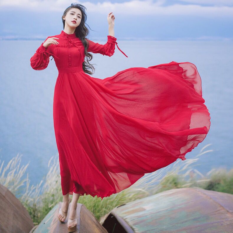 小编是真心佩服这家店,每件宝贝都拍得这么美,让让着魔。这款连衣裙显胸显腰身的同时,很好地遮盖臀部臀部缺陷,大红的配色更加美艳夺目。