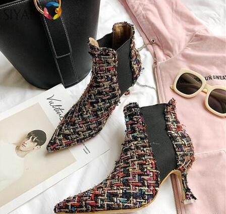 在这流行阔腿裤的季节里,不配上一双猫跟短靴怎么能行!想要霸气外露的你怎么能少的了它!一件浅色的毛衣,配上有个性的格纹阔腿裤,再加上猫跟短靴,女人味展现,配上一双镭射短靴让整体有了不一样的改变!女人味在加上帅气,简直好看得帅气的不行。在情人的约会中,完全能成为街头的亮点。