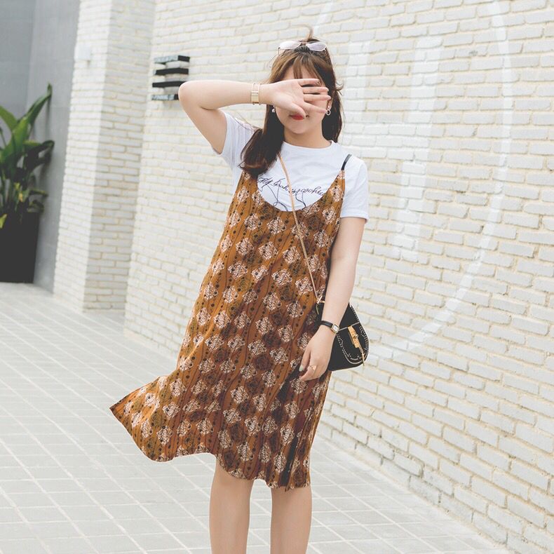 很有民族风情的一款吊带裙,整体的印花图案韵味十足,面料有着十足的垂坠感,会穿和不会穿衣服的姑娘,差距有多大?在春风中尽显飘逸,吊带处的设计,呈现出了U领,内里搭配上纯色T恤,会很显时髦的哦。
