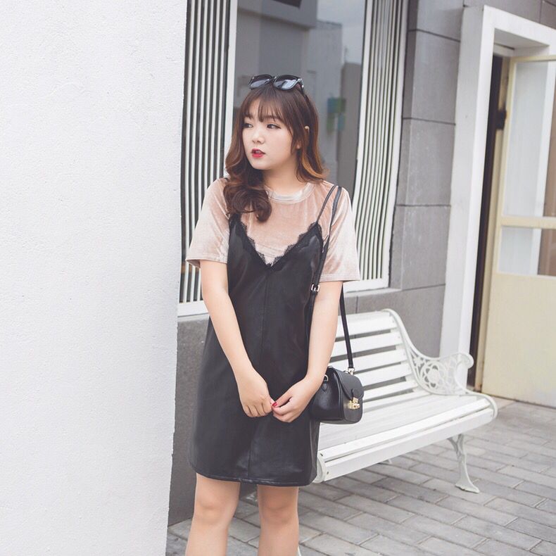 这款吊带裙的版型设计,能够让你感受到满满的时髦度,选用了细腻的皮质面料,触感非常的棒,V领装点上了精美的蕾丝,显得格外美好,黑色系很显瘦,随意搭配都好看。