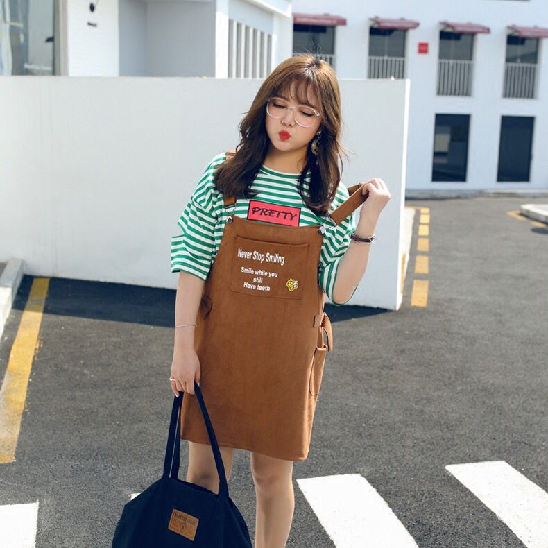 其实微胖姑娘是非常适合穿背带裙的,背带本身就自带减龄效果,宽松的版型,能够让你的气质显得更加的俏皮可人,内里搭配上宽松的t恤,仿佛回到了那年青春哦。