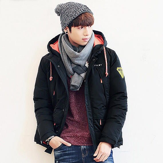 深色外套也很百搭啦,这款外套有着温暖的撞色感,橙色系提亮了整体的版型,显得十分别致,让内搭的马甲也不会显得太单调,连帽设计和马甲的立领合作,这样的层次感够帅!男生穿衣搭配技巧,简约男士外套,让你做个温暖时尚男神
