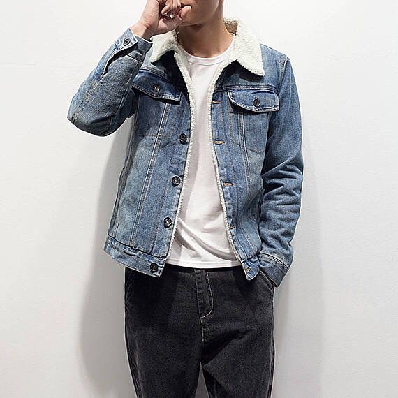 你可以选择水洗感很重的牛仔衬衫作为内搭,清新泛白的颜色在内搭下会很别致,羊羔绒的领子是温暖的体现,做旧感的纽扣装点了格调感。时尚服装。