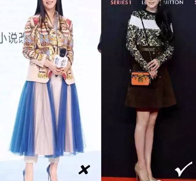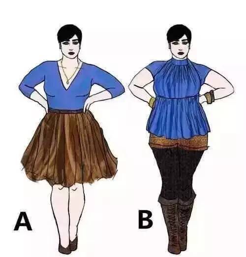 结论:很明显A比B看起来显瘦很多、得体很多,时尚服装,而偏偏有很多人却穿成B的样子,这种多层次的搭配不仅让人感觉很凌乱,而且还凸显你的大屁股!