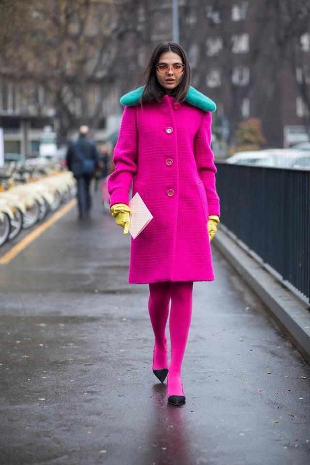 荧光色系容易穿得浮夸,再配上黑色连裤袜,则使整套搭配显得俗气,拉低了档次,瞬间和高级感say Goodbye。而且如果皮肤不白的妹子穿荧光色,则会显得皮肤更黑,十分土气。所以,荧光色系的衣服还是应该慎选!