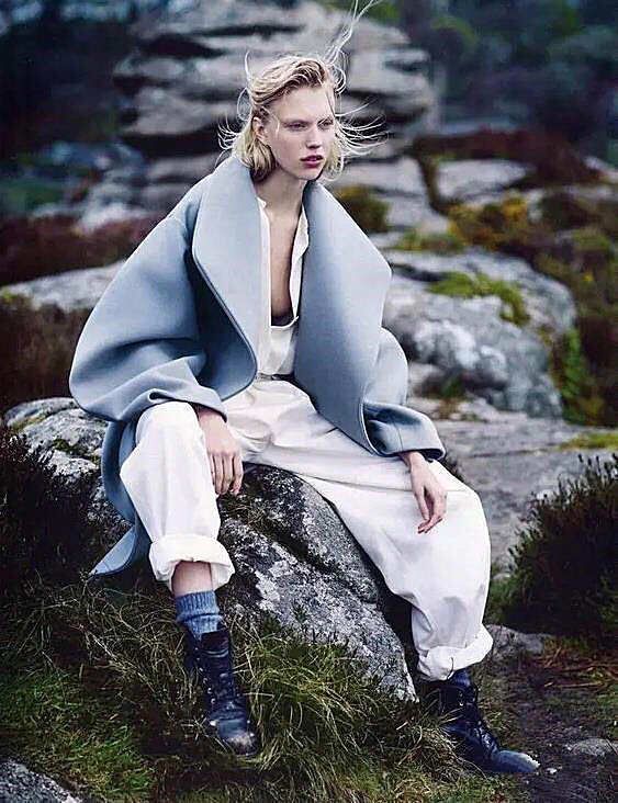 嫩芽绿般的草木绿,在寸草不生的冬天,总能给人充满生机与希望的感觉。搭配黑色皮裙或者裤子,穿着黑色皮靴,在冬天也美美哒!