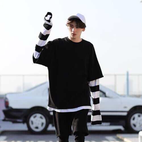 这一款也是我很喜欢的一款哦!时尚服装,拼接条纹袖休闲装,重点是简约休闲很chic哈!可以搭配情侣款,可以跟另一半穿起来虐狗!!版型也是oversiza的那种女生穿会感觉比较娇小,男生穿很man哦~