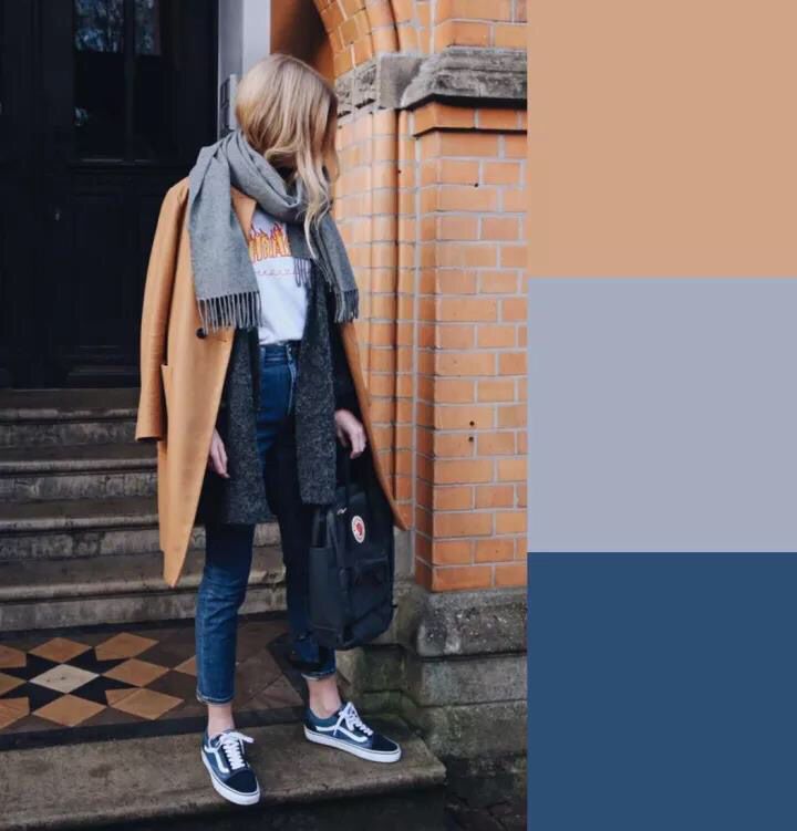 焦糖色大衣搭配灰色的针织外套不仅给人一种十分温暖的效果,甚至十分有个性,搭配一件牛仔裤和一双运动鞋或是雪地靴,在寒冷的冬季也不会感到很冷,而且这种颜色的搭配还能呈现出显白的效果,格外时尚。