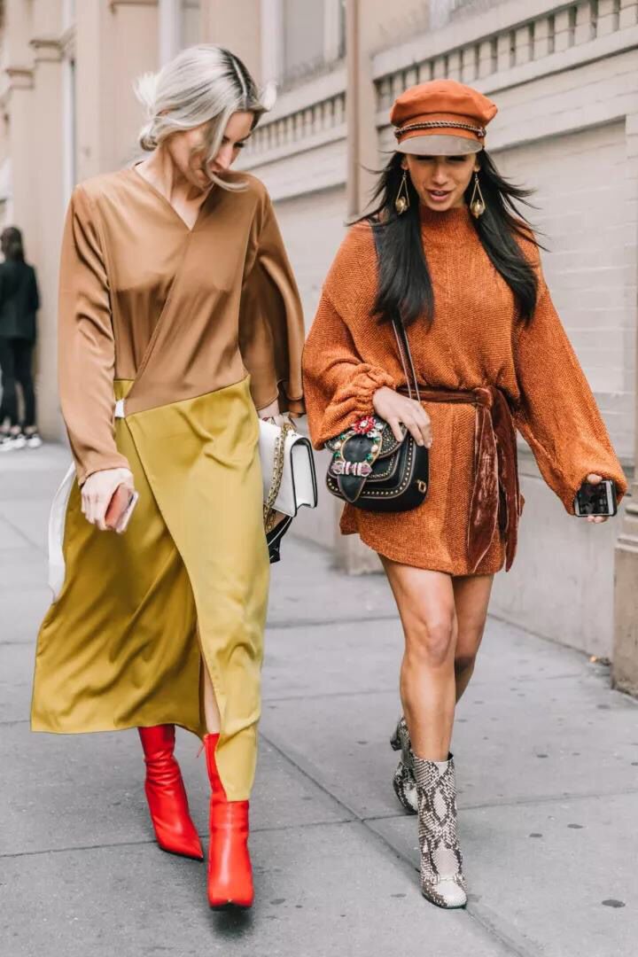 黑色向来是妹子们显瘦显腿长的百搭颜色,而焦糖色与黑色搭配非常有气质,焦糖色大衣或毛衣与黑色打底裤的组合非常有气质,而且显白效果也非常突出,对于黄皮妹纸来说是一种非常好的选择。
