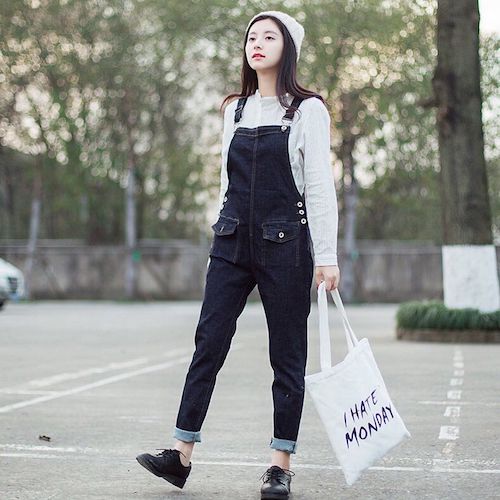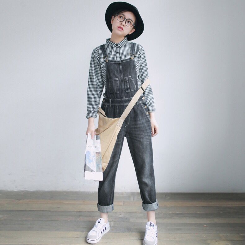 如果说蓝色牛仔背带裤是青春怀旧感,黑色背带裤就是日本杂志北欧风,不管它是不是常规牛仔背带裤更小众化,内容、色调和风格都有与众不同的追求和品位,是今年的新颜色,版型宽松、直筒、男装搭配!裤脚口部分稍微收口设计,收缩的裤脚口比较符合国人的审美,可以卷起来,变成九分裤。