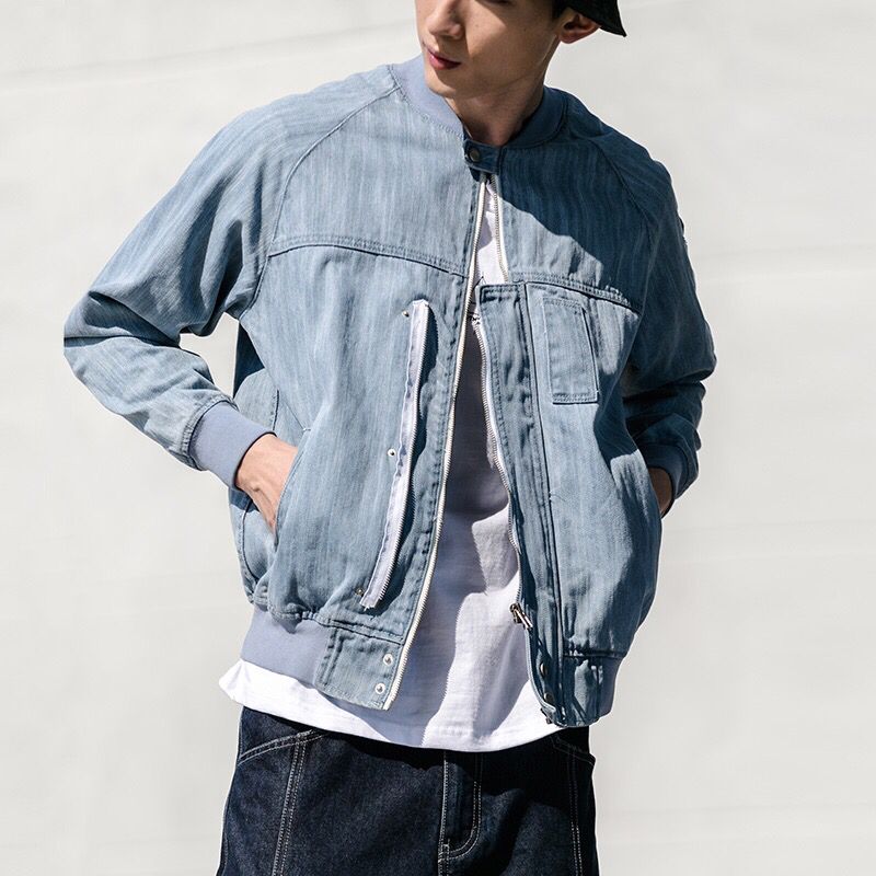 本款牛仔夹克,采用 高支精梳长棉牛仔布重洗水工艺,本身面料带有竖竹节和人字纹肌理,洗水后工艺感很赞,双拉链门襟设计,版型偏大,牛仔棒球夹克的螺纹很讲究。配上一件浅色打底衣,完美体现出邻家大哥哥的干净整洁。