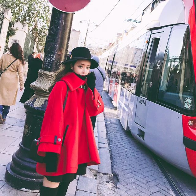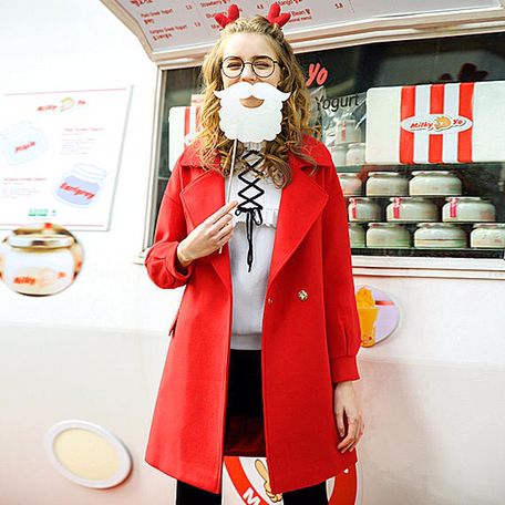 俏皮小女巫的30%羊毛魔法服,简洁利落的连帽设计,小小的A型,整体显得大气爽朗,一气呵成的开叉剪裁,连帽与大翻领的效果,随意自在的感觉展现的更加到位。新年穿红色大衣搭配:以为很喜庆,结果很时髦