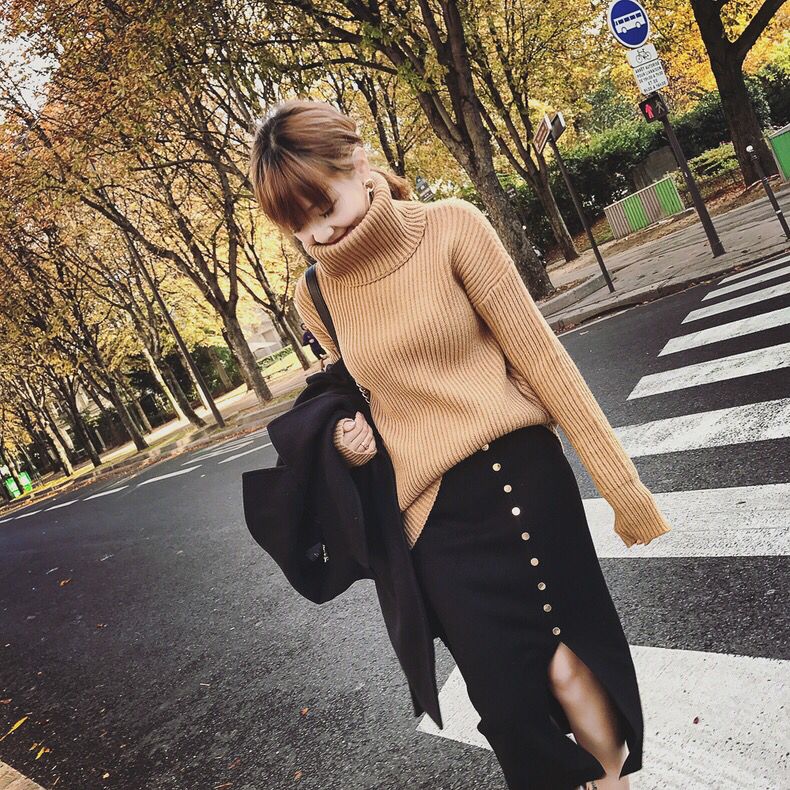 用oversize的中长款毛衣吼住整个冬天,推荐人人必备,尤其是懒星人,内搭一件就能搞定,外穿也是那么的适合,就是这么的万能,怎么都不会出错!自由的落肩袖,轮廓线依肩而落,线条更加柔美。颜色温暖,简单时尚,穿出秋冬天的感觉——慵懒和随意的,却处处透漏着用心。
