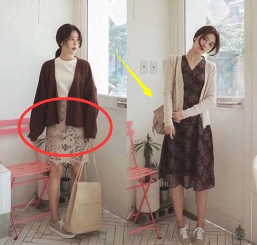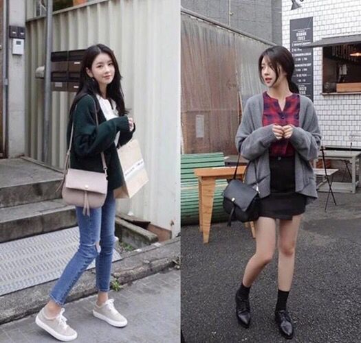不管是套头毛衣还是毛衣开衫,都可以搭配包臀裙,显得知性又温柔。但不过,如果要将毛衣直接塞进裙子里,切记不要选择太厚的毛衣。如果是厚毛衣的最好是开衫,像右边的搭配,也不会失去整体的美感。记得要把裙子拉高哦,这样会显得腿很长~我平常也很喜欢这样穿,感觉腿长一米八!
