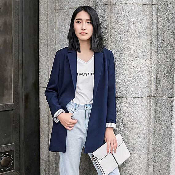 小西装不仅仅只用来提升气质,还能为你很好的保暖,让你轻松自之余,不经意间就散发出优雅的迷人纷芳。长款小西装能更为你修饰身型,增添风度。在衣橱,有长有短才更好搭哦。