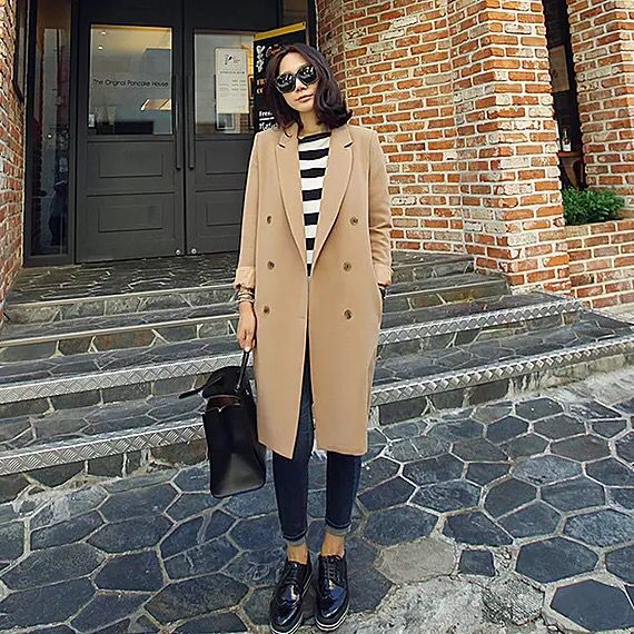 喜欢这种随性洒脱的感觉,不会有束缚感,又不失女性的优雅柔情。个性的双排扣富有英伦风,玩出了复古新鲜感。精致的驼色也成为最潮的指标颜色,独具品位的时尚之选非它莫属。