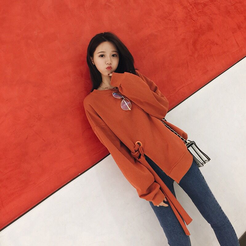 可爱的小圆领,不规则的剪裁,长长的衣袖,衣摆中部特别的绑带设计,放浪不羁的小自由,适合早秋穿搭方式,拥有这些才完美猫咪慵懒的小性感。
