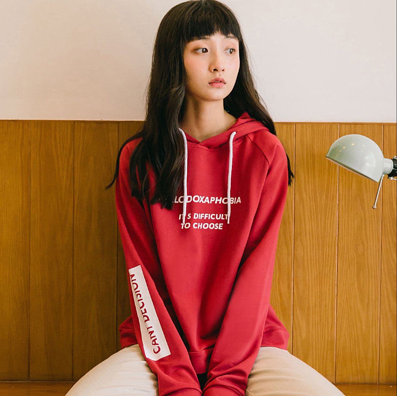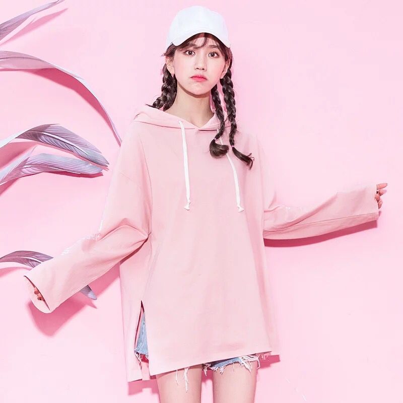 当下很流行的BF风,版型是很宽松的,学生气息的感觉,特别活泼。粉红色,非常适合软妹子!黑色的话有点酷酷的BF风,藏青色耐看。而且还和黑色不一样,这个颜色比黑色显白一点,对肤色偏暗的妹子还是要友好不少的。