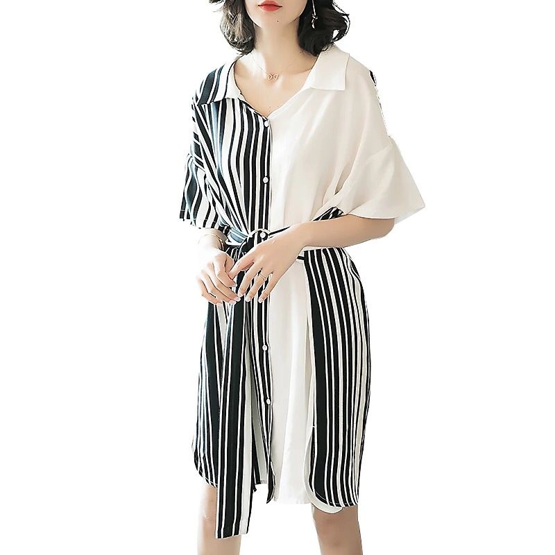 简介条纹元素流行了整一年,也美了一年,今年却还是大热的流行元素,不得不说是经典,经久不衰。想来妹子们衣柜 文艺小清新气质条纹衬衫连衣裙,短袖透着一丝清爽的气息,同时衬显...