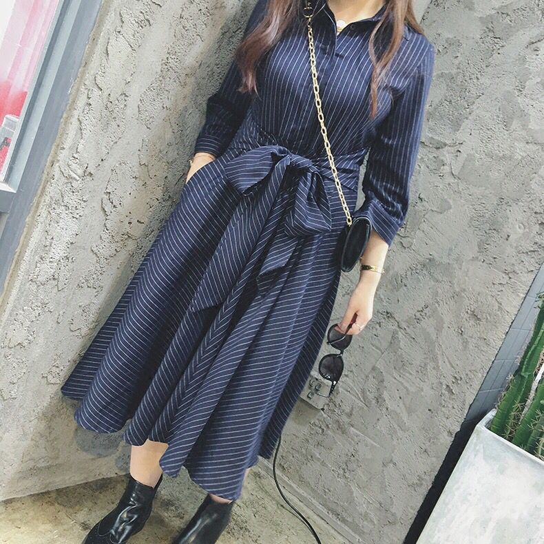 ◆一款非常显瘦的连衣裙,长款,细条纹,绑带设计,可以说是集合了所以适合胖宝宝们的元素,真的是很不错哦,细细的条纹款式,加上深色的打底色,收缩视觉的效果,简直就是棒棒哒。