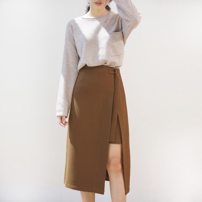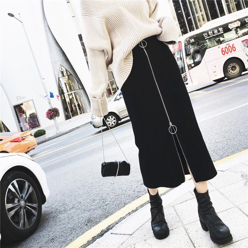 高腰包臀的版型将玲珑有致的好身材展露无遗,前面的金属圆环一字拉链装饰十分个性特别,完全闭合就是一条普通半身裙,拉开就变成了开叉裙,开到什么程度随你心情咯~