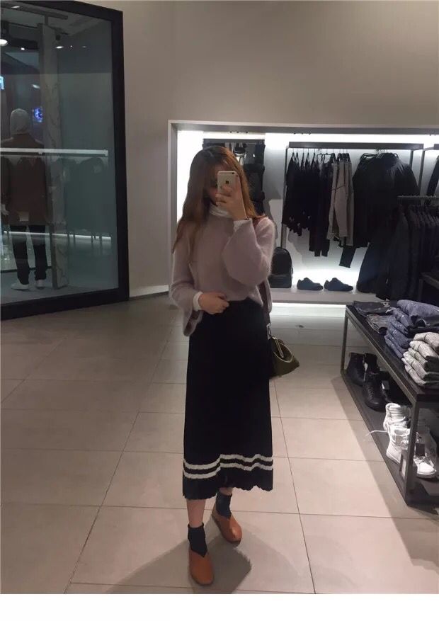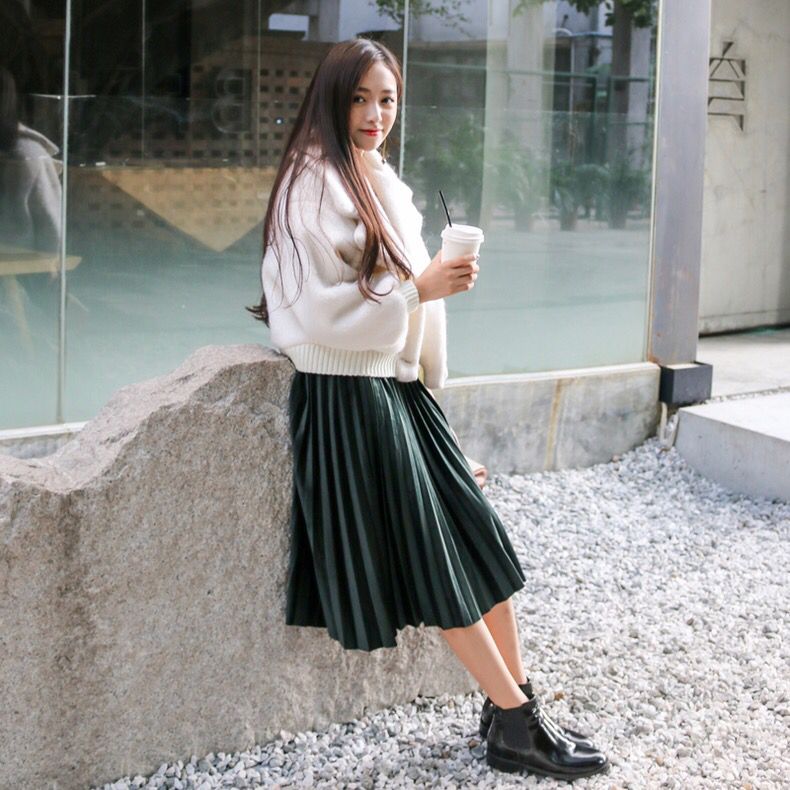 复古的灯芯绒面料舒适有触感,松紧腰的设计更加舒适方便穿脱,宽松的裙摆更加修饰臀部和腿部的曲线,墨绿色的配色更加文艺复古。元气少女LOOK,清新毛衣搭配!