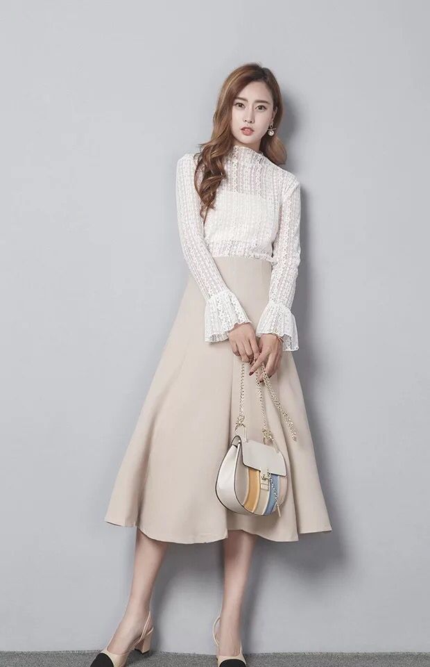 高腰的设计更好的突出腰部曲线,宽松的裙摆能够很好地遮盖臀部和大腿的缺陷,米白色的配色十分素净淡雅,超级适合皮肤白皙的气质lady们穿着。