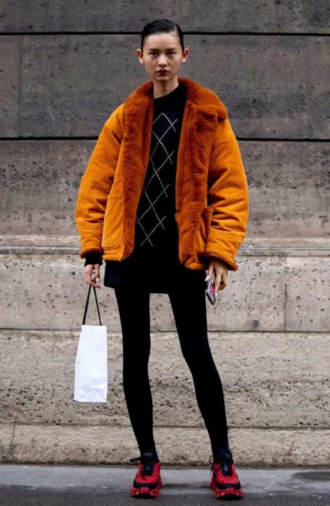 要想在一众美女中脱颖而出,没点小技巧怎么行。首选就要选择图中类似的亮色系,一眼就可以抓住视线焦点。领口的一层毛绒设计瞬间壕了不少,有种crush风的赶脚。内搭毛衣裙和打底裤,色系分明还能轻松秀出好身材。