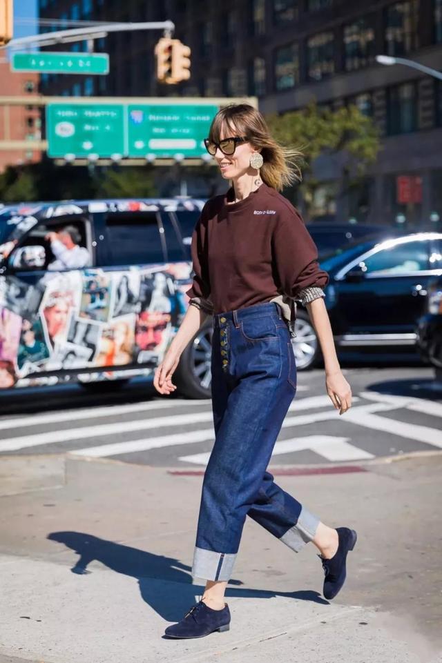 宝蓝色的阔腿裤和棕红色卫衣的撞色搭配也同样是具有时尚和活泼感,将衣服塞进裤子更显得腿长哦,这样对小个子的姐妹也很友好的。上身的重色搭配不仅可以使整体的色彩搭配和谐同样也可以显白,对于肤色偏暗的姐妹很有帮助。这样不仅可以使自己看起来更高,还可以突显自己皮肤白哦!