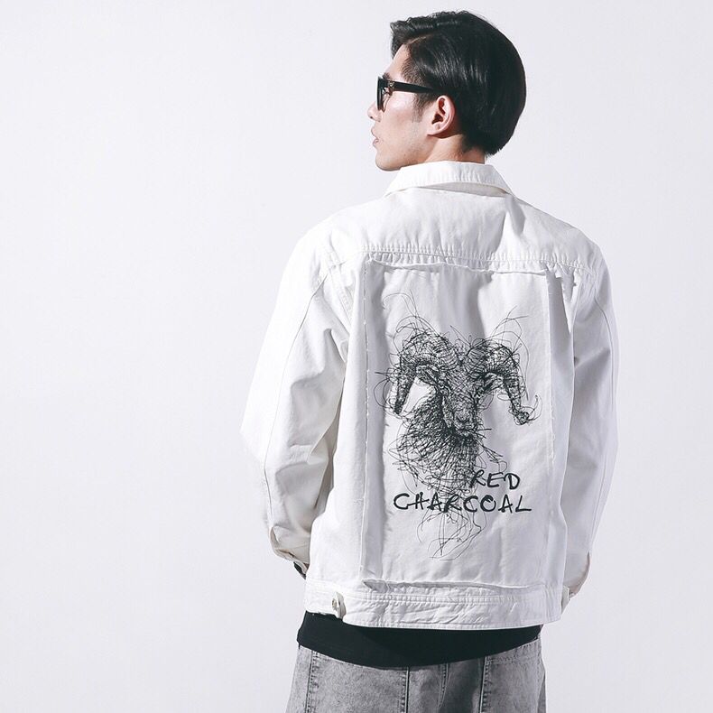 牛仔是永恒的!翻领的设计,凸显出气质,专属的纽扣搭配一深浅的口袋设计,更加凸显衣服档次。复古风搭配水洗工艺结合时尚纯净的白色主调,配上霸气的羊头印花,让你成为人群中的视觉焦点,更显潮流个性,相信谁都拒绝不了这样的诱惑 。