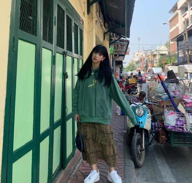 不要以为碎花裙是温柔小女人的专属,谁说休闲就不能穿碎花了!卫衣配碎花,保证你A感满分!现在大街上满街的AJ女孩,任谁看了都会觉得有点腻,想要在这一众的AJ中间脱颖而出,试试碎花裙吧!用oversize的卫衣搭配碎花裙,活泼又动感!