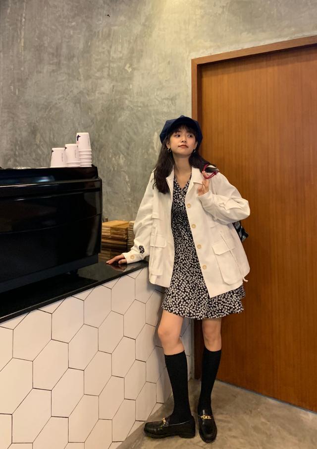 酷酷的女生们,小编则是推荐你们尝试入手一件牛仔外套来搭你的碎花裙哦!凌乱的碎花裙正好用白色的廓形牛仔外套压一压,下半身就简单多了,中筒袜配乐福鞋,突出了大长腿的同时,让你洋气又减龄!想要显得更俏皮就让贝雷帽添个彩!