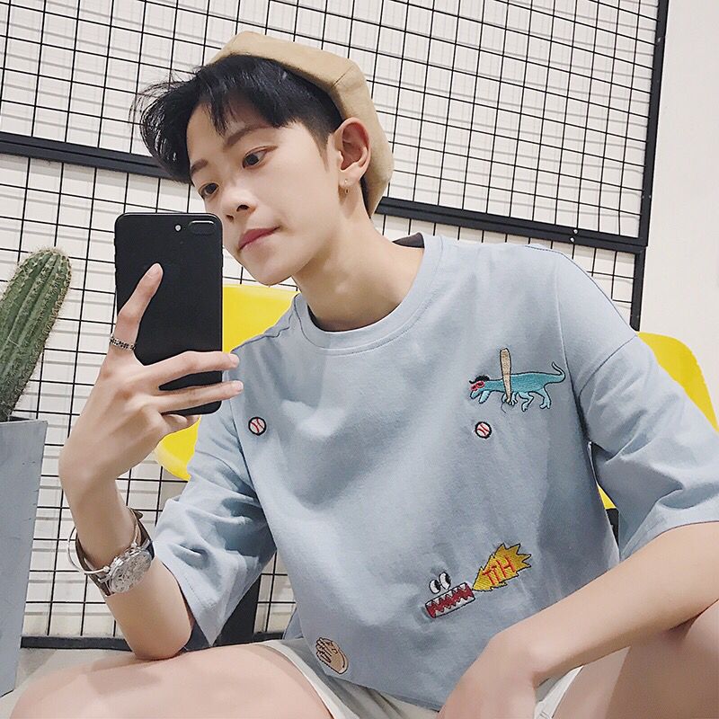 夏季就是需要穿清爽舒适的衣服,尤其是男生,充满活力各种跑跳,更需要足够清爽舒适的衣服,一件简单的纯棉T恤,加上活泼可爱的刺绣印花,让衣服看起来很有个性哦!