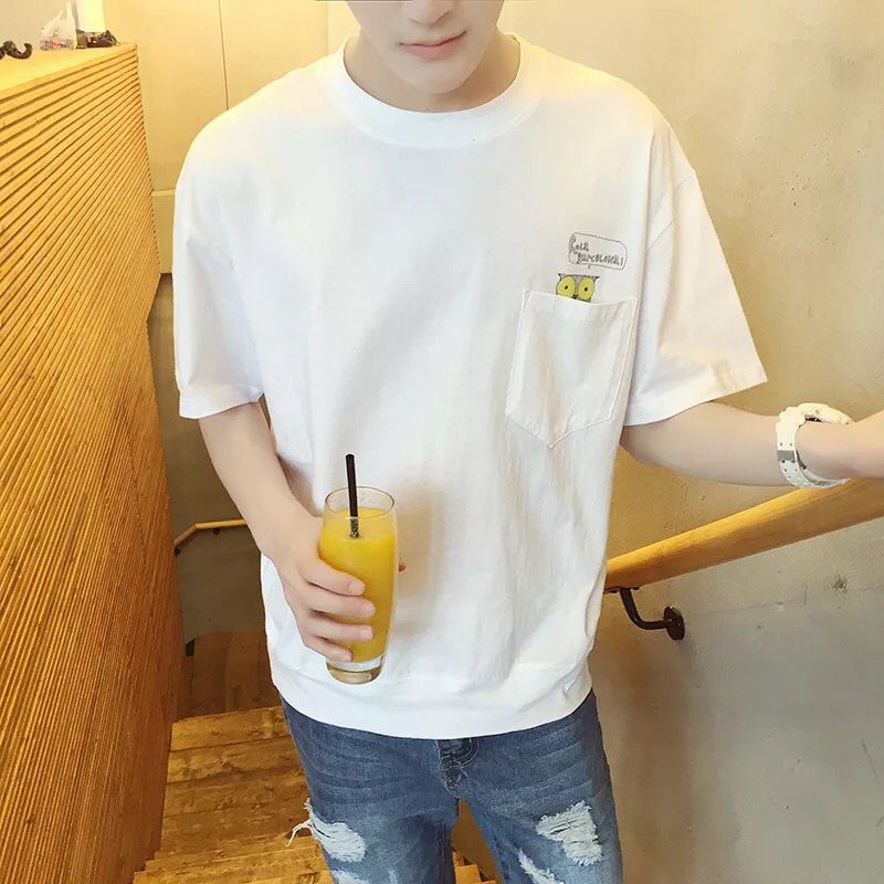 有点小清新风格,更多的是优雅的气质,穿上粉色就有这种鲜嫩的效果,而且它很容易彰显出时尚感,口袋处冒出来的猫头鹰设计,展露了一半的萌感,他们只有160,但帅到突破身高限制!显白还显嫩的T恤,没介绍错吧~