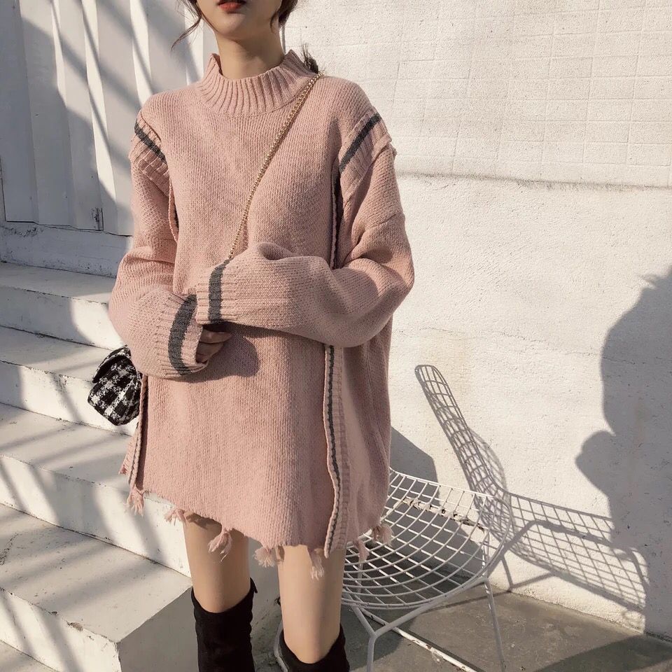 这款衣服是半高领毛衣的设计,穿起来有很好的修饰脸型跟颈部的效果,这款衣服是流苏的拼接设计,穿起来充满层次感跟高级感,显瘦效果也是非常好的,这样毛衣妹子们不能错过。