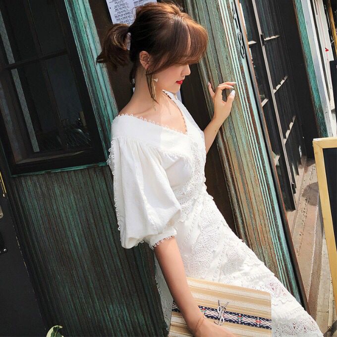 镂空泡泡袖拼接连衣裙。泡泡袖也是夏天的HOT元素,遮住了手臂的赘肉不说,丰富了连衣裙的层次感,加入了镂空设计之后有种微微性感的Feel,让你走到哪里都超级靓丽迷人。