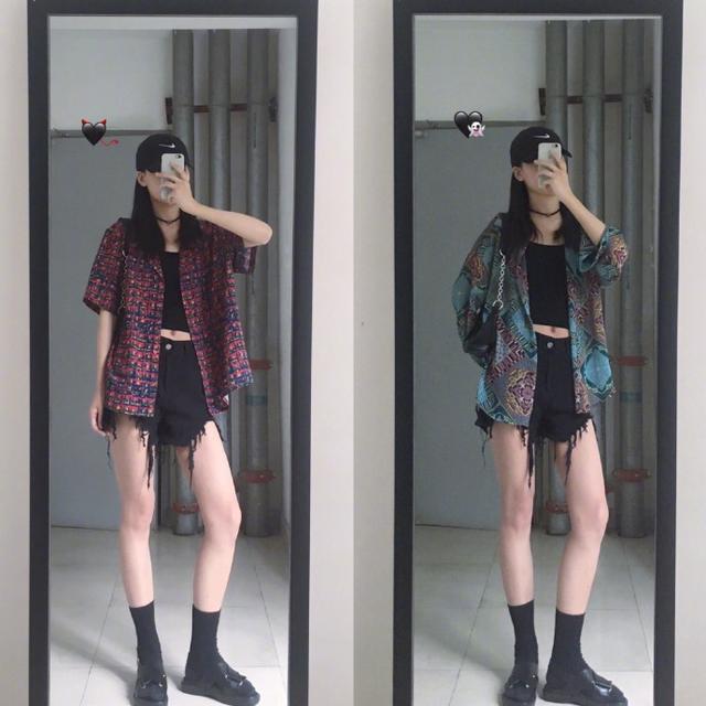 这种衬衫和热裤的混搭穿法其实不算是典型的下衣失踪风,但是所营造出来的效果绝对不相上下。夏威夷风或是港风衬衫都可以,大胆奔放的花纹十分符合夏天的气息。内搭的一切都以黑色作为主打色,低调又耐看。特别是热裤和衬衫营造出的下衣失踪感,搭配长袜腿长瞬间直奔2米。