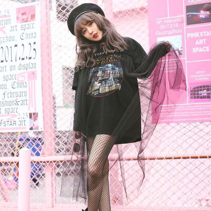 简单的T恤裙自带一种休闲随性的韵味,能大程度的释放自我,整体简洁大方的版型融合冲击感十足的印花色彩,拼接上柔软质感的网纱面料为整身造型增添与众不同的韵味。