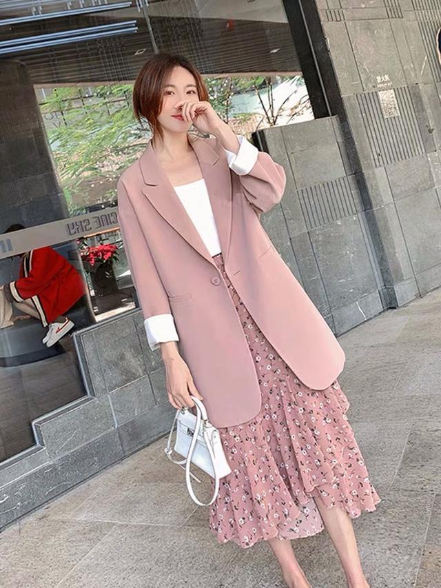 相比于轻纱和雪纺材质的连衣裙,半身裙的款式,除了优雅如仙,还多了几分女性魅力,连衣裙淑女,半身裙更为热情。百花争艳的春天,可谓是风光无限好,从上至下的粉色系穿搭,小西装和裙子都采用不规则剪裁的款式,时尚多姿,实力演绎职场魅力女和情场俏佳人。