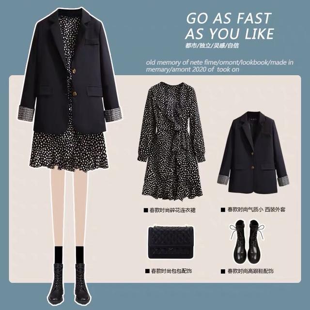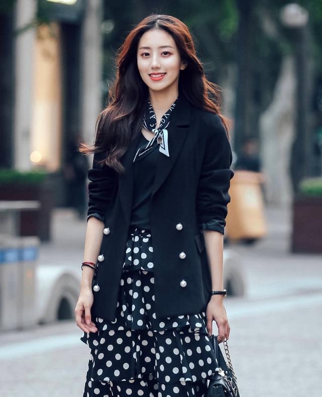 复古又经典的裙装,还有波点裙,它的存在是时代的印记,也是女性气质美的精髓,瞬间让穿搭具备高级质感。小西装和裙子,两种不同风格激烈碰撞,迸发出时尚火花,让你成为办公室里行走的潮范儿。小西装+内衫+半身波点裙,再系一条丝巾,全情演绎优雅高级的“赫本风”。