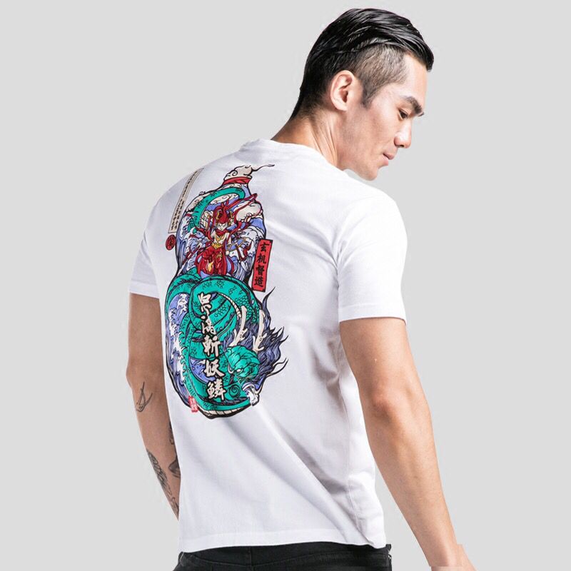 精湛原创印花,犹如中国风的磅礴大气在后背上遍布。全新满背无触感印花,穿上这件T恤,你的背影看起来结实而有力,但又不失成熟男人拥有的温柔。紧密的缝制工艺,从设计开始,到成品出现,相信挑剔的你也会看到背后凝聚的心血。高克重水洗双面磨毛棉,亲肤柔和。创新的吊牌设计,相信会给你带来不一样的惊喜。