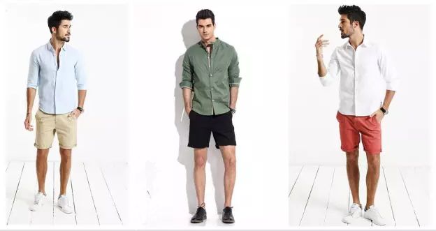 白色衬衫和深色系短裤搭配,让人砰然心动。浅蓝色衬衫和浅色短裤搭配,绅士风十足。深色系衬衫搭配短裤也别有一番风味,更显男人的成熟与稳重。